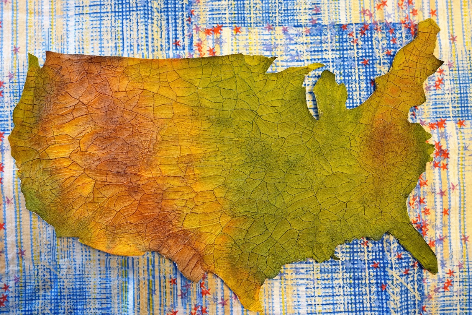I decided to focus on adding mixed media to my quilt this time. So, I started with a map from an old atlas.